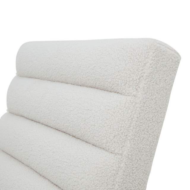 Elevate your space with the Boucle Ribbed Ark Chair, featuring a sleek curved black metal frame that adds bold architectural interest. Upholstered in soft cream boucle fabric with channeled detailing, this chair combines luxurious texture with modern elegance. Its ergonomic design offers gentle rocking comfort, making it perfect for reading nooks, bedrooms, or stylish living areas. Ideal for design-conscious buyers, this statement piece blends seamlessly with minimalist Scandinavian interiors or rich, upscale modern decor. Bring both visual impact and practical comfort to your retail collection with this striking chair that embodies contemporary sophistication and inviting charm.